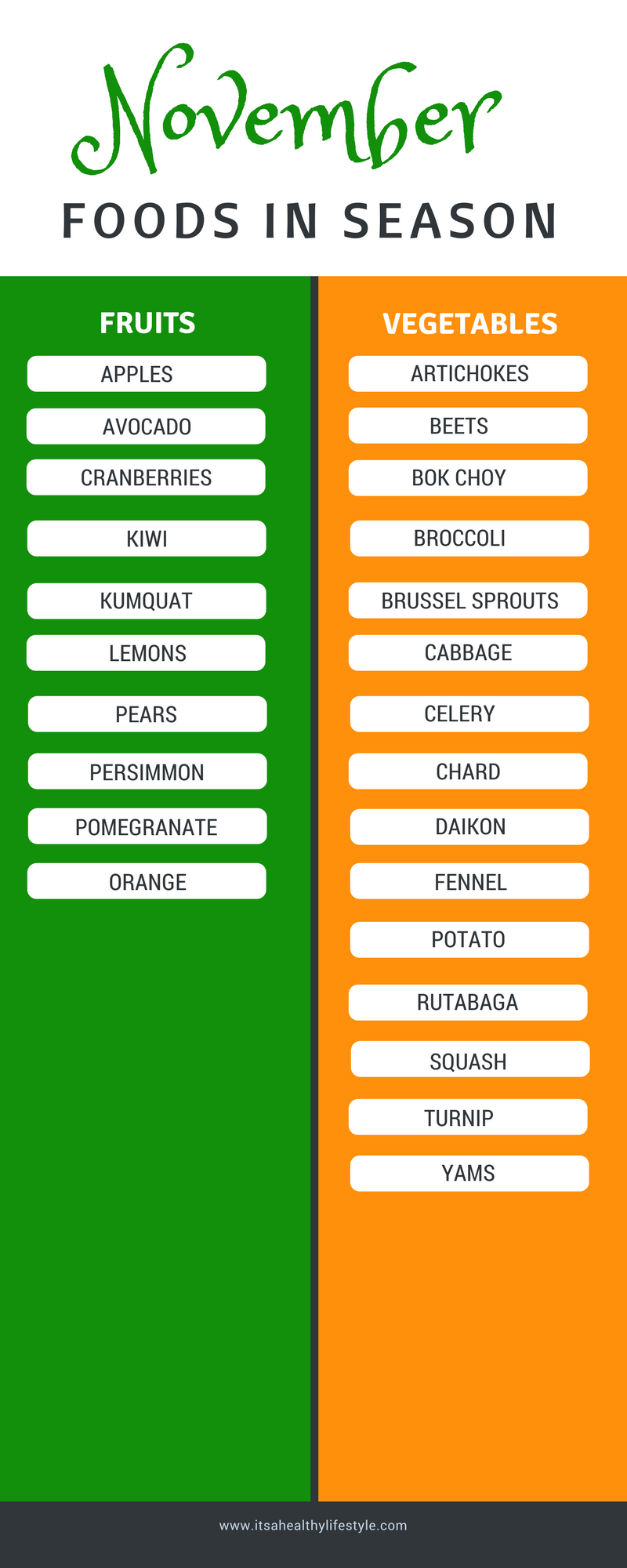 As you begin you plan your meal plans for Thanksgiving. I challenge you to add at least one new fruit or vegetable from foods in season this month to your holiday meal.